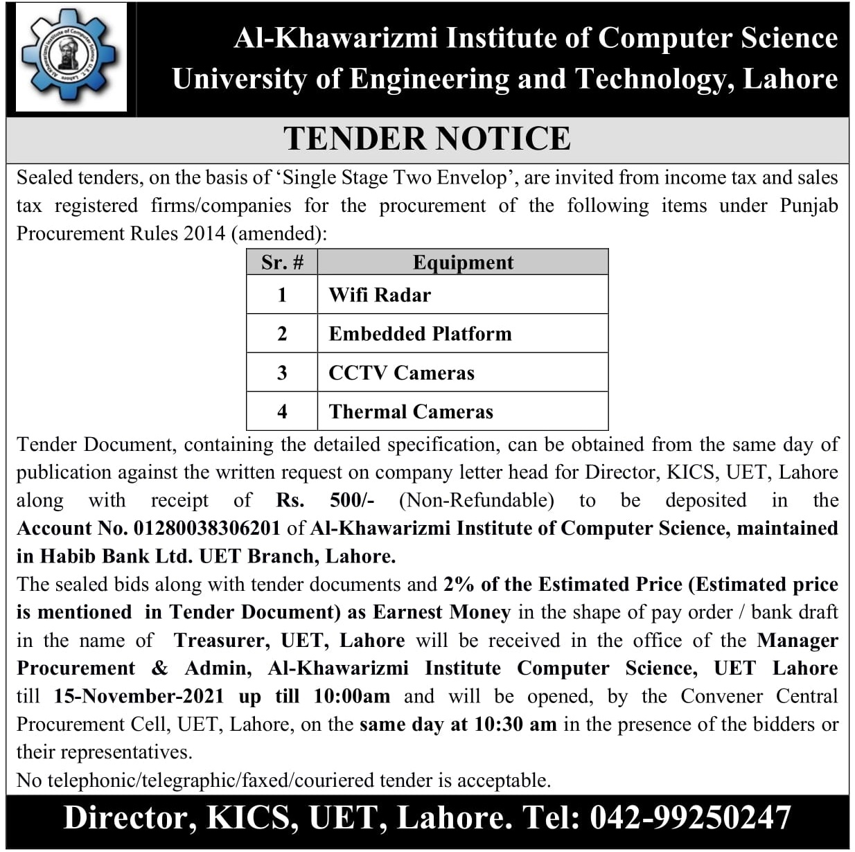 Tender of Equipment for NRPU Project Home>> Tender of Equipment for NRPU>> Tender Document Posted on: November 2, 2021 Arooj Zeb